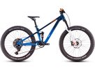 CUBE STEREO 240 Actionteam 2026 je jedinečné dětské 24" trailové celoodpružené kolo, které vychází z ověřeného designu oblíbeného dospělého modelu. Toto kolo je postavené na lehkým hliníkovém rámu s kvalitní vzduchovou vidlicíManitou Machete a tlumičem SR Suntour Edge R. Hydrailické brzdy Magura MT Thirty a 9ti rychlostní řazení Shimano Cues U4000.