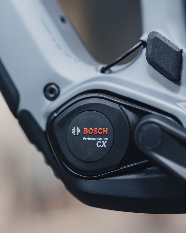 Motor Bosch Performance Line CX 5. gen s možností navýšení kroutícího momentu až na 100 Nm pomocí aplikace Bosch eBike Flow. Baterii Bosch s ohromnou kapacitou 800 Wh integrovanou v rámu lze snadno odemknout a vyjmout z kola pro případ přepravy, nabíjení např. na dovolené nebo zimní skladování. Nový displej Bosch KIOX 400 C, který je plně integrovaný do horní rámové trubky, poskytuje možnost zobrazení navigace a je doplněný o USB-C výstup, např. pro nabíjení telefonu. Displej je ovládaný drobným palcovým tlačítkem umístěným vedle madla na levé straně řídítek Mini Remote. Systém Bosch doplňuje rychlá 4A nabíječka.