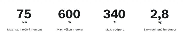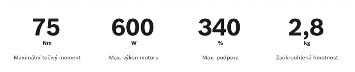 - Maximální podpora motoru je 340 % síly působící na pedál.